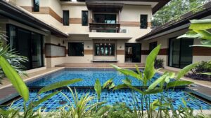 บ้านสไตล์ล้านนาที่อบอุ่นและกว้างขวางพร้อมสระว่ายน้ำนี้อาจเป็นของคุณได้ในวันพรุ่งนี้ ตั้งอยู่ในหมู่บ้านเงียบสงบและเป็นส่วนตัวติดคลอง บ้านหลังนี้อยู่สุดซอยถนนที่ไม่มีรถผ่านไปมาเลย คุณสามารถหลีกหนีจากความวุ่นวายของเมืองและเพลิดเพลินกับเสียงธรรมชาติที่เงียบสงบ ท่ามกลางต้นไม้และพืชพรรณต่างๆ