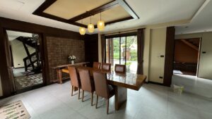 ทุกห้องติดตั้งเครื่องปรับอากาศเรียบร้อย ห้องครัวพร้อมด้วยตู้เย็นขนาดใหญ่ เตาไฟฟ้า เตาอบ และไมโครเวฟ การตกแต่งภายในโดยสถาปนิกที่มีชื่อเสียงท่านหนึ่งทางภาคเหนือ และมี เตียง โต๊ะ และเฟอร์นิเจอร์ไม้สักจริงสไตล์ล้านนาที่สวยงามและทำด้วยมือ ชั้นบน เหนือโรงรถ เป็นพื้นที่สามารถใช้เป็นห้องบันเทิง/นันทนาการที่กว้างขวาง เหมาะสำหรับ ทำเป็น office หรือห้องโยคะ ห้องออกกำลังกาย หรือแล้วแต่ที่คุณต้องการ ส่วนนี้ยังมีห้องพักแม่บ้านที่อยู่ติดกับห้องซักรีดด้านล่างติดกับโรงจอดรถอีกด้วย
